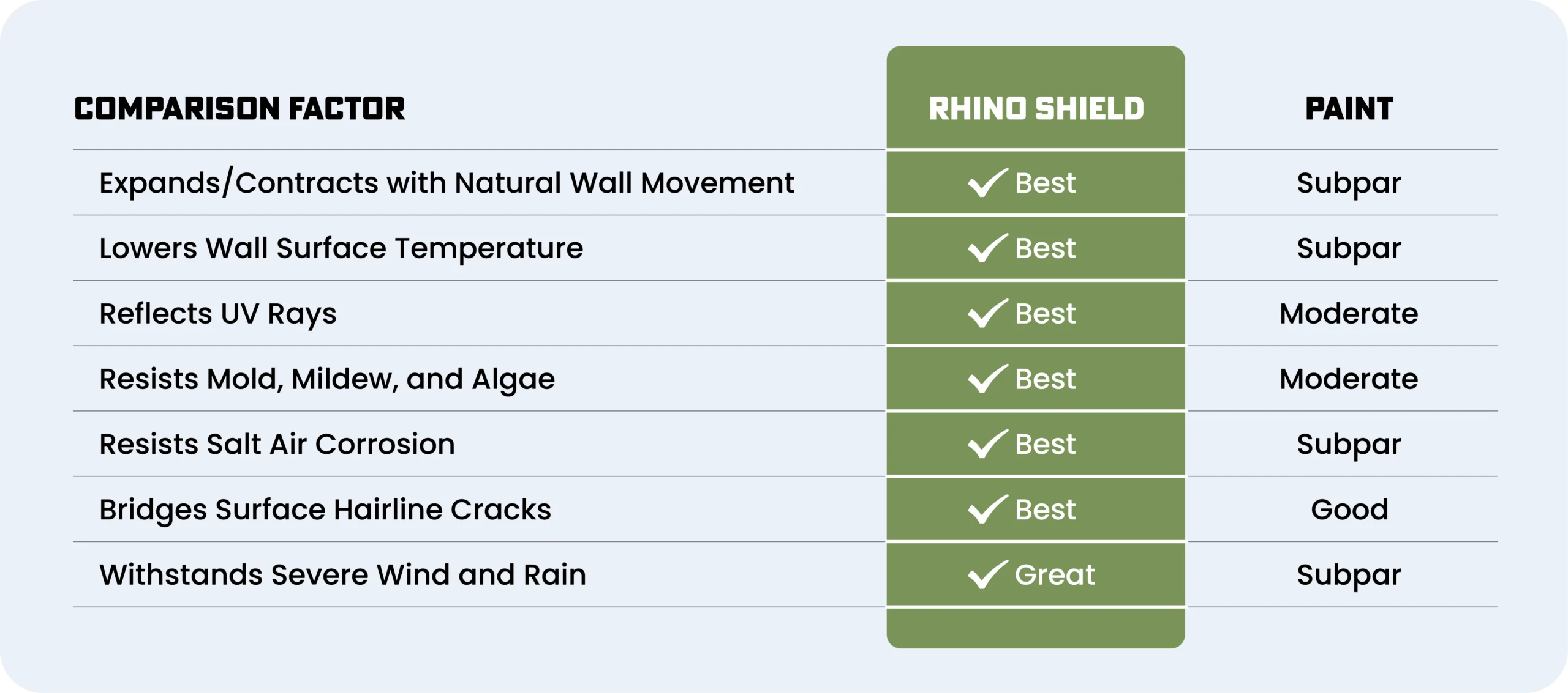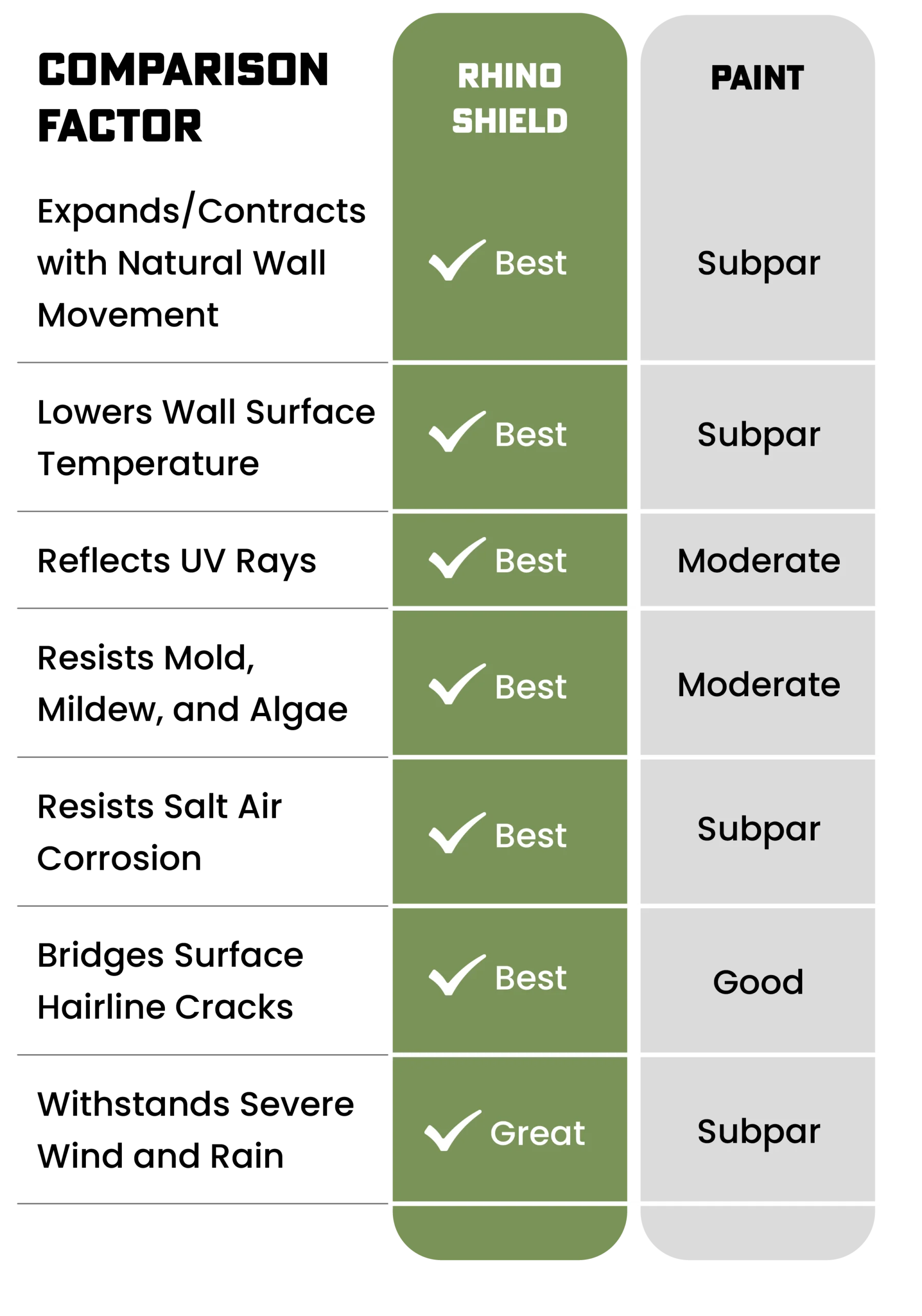 RhinoShield outperforms traditional latex paint in durability, adhesion, weather resistance, and overall longevity. Across nearly every performance factor that matters to New Jersey homeowners and businesses, Rhino Shield consistently delivers superior results. Partner with Rhino Shield of New Jersey for your next exterior coating project and see why Rhino Shield is the trusted choice for lasting exterior protection.
