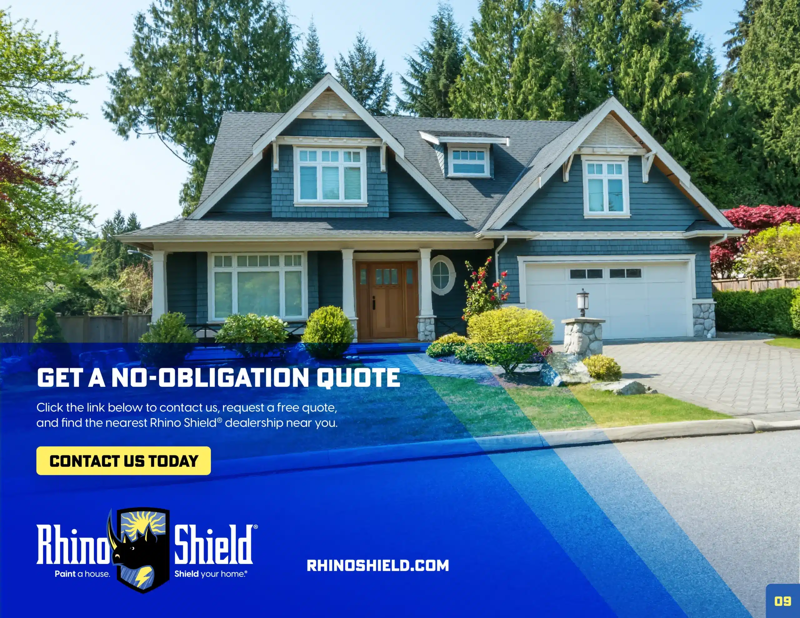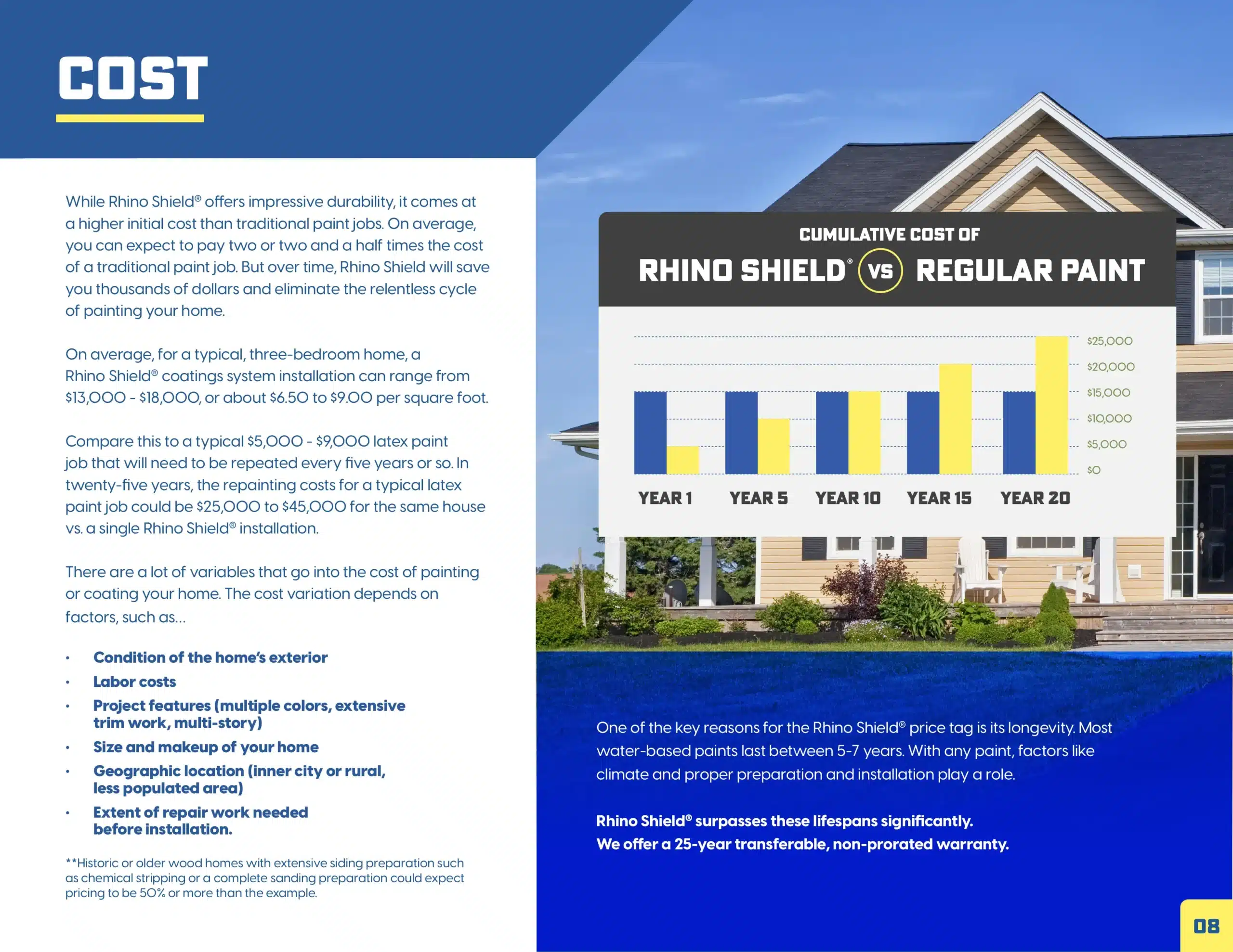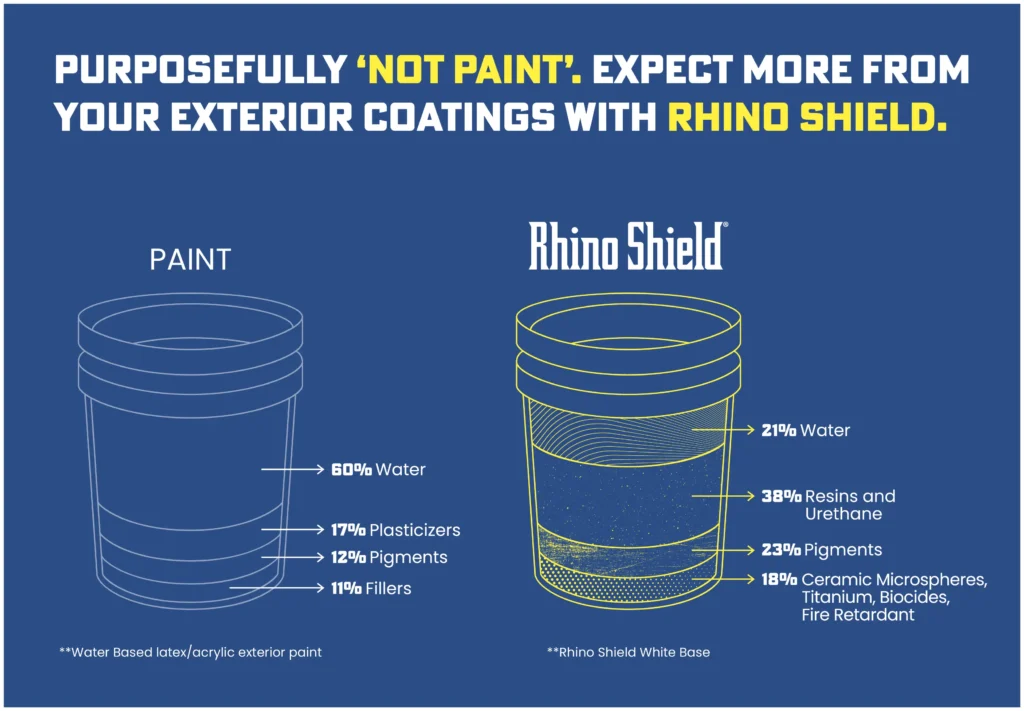 Rhino Shield is a ceramic-based acrylic coating system for the exterior of your home. It goes on LIKE paint, but it does three things that paint does not: Protect, Insulate and Last.