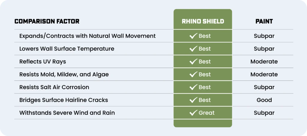 RhinoShield isn’t ordinary paint. It’s a high-performance ceramic coating engineered to outperform latex in the areas that matter most to homeowners: durability, weather resistance, fade protection and long-term value.